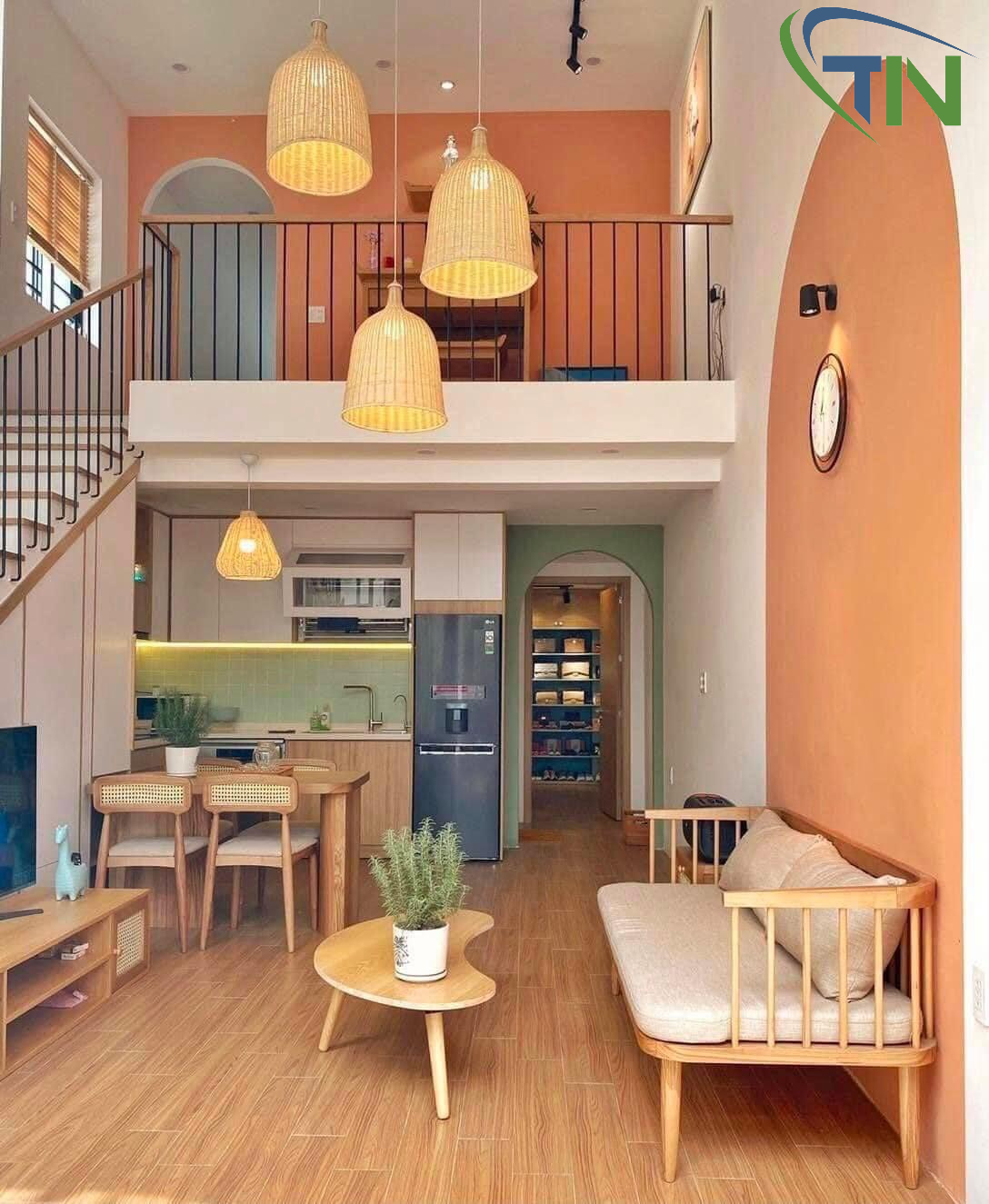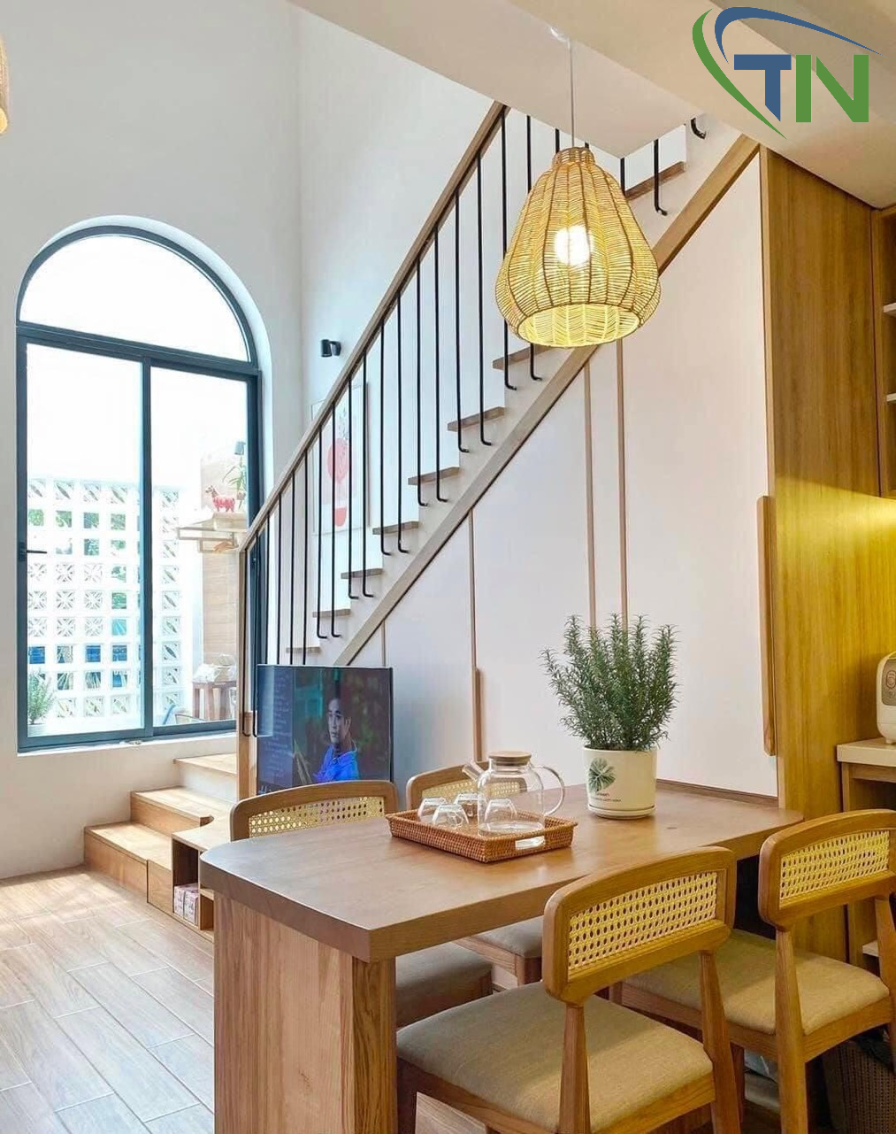 Không gian mở được ứng dụng xuyên suốt với những thiết kế nội thất 2 trong 1, Nhờ đó không gian nhà ở được tận dụng tối ưu. dễ dàng bắt gặp những không gian chức năng được kết hợp hết sức linh hoạt với nhau, không hề bị chia cách bởi những bức tường. Ví dụ như phòng khách kiêm khu vực bàn ăn và gian bếp