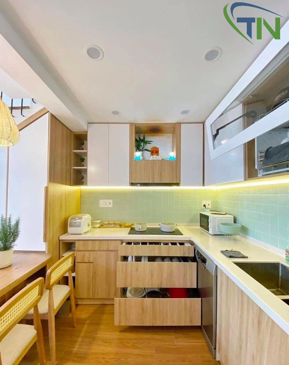 Trong căn bếp hiện đại, không nên dùng quá nhiều đồ vật khác nhau, chỉ cần những món đồ cơ bản là đủ. Cũng tương tự với phòng khách, nội thất đa chức năng là lựa chọn thông minh cho căn bếp. Bên cạnh đó, một trong những phương pháp cải tạo nhà theo phong cách hiện đại để làm mới căn bếp là dùng gạch sứ ốp lát tường, nền nhà. Vì vậy liệu này không chỉ sáng đẹp, mà còn dễ dàng lau sạch, bền bỉ với thời gian. Nếu như bạn không có nhiều kinh nghiệm, thì hãy tham khảo tư vấn từ kiến trúc sư về vị trí đặt bếp, tủ lạnh, bồn rửa,… để tiện nghi nhất.