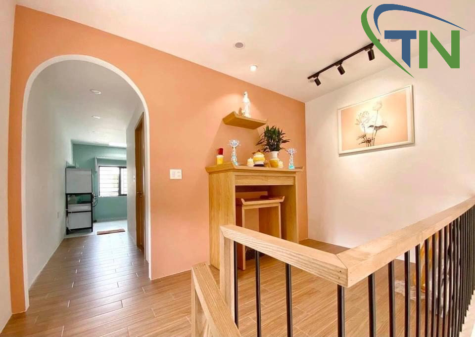 Những căn nhà có diện tích hạn chế thì việc làm thế nào để đầy đủ các phòng chức năng thì không phải đơn giản. Bạn có thể chọn phương án xây thêm gác lửng để làm phòng thờ hoặc phòng ngủ. Quyết định này sẽ giúp phòng khách, phòng bếp ở tầng trệt có thêm diện tích sử dụng.