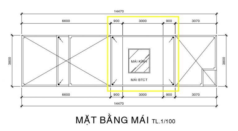 - Chiều dài mái: Mặt bằng mái này bao gồm cả seno thoát nước có độ rông 0,9m.
