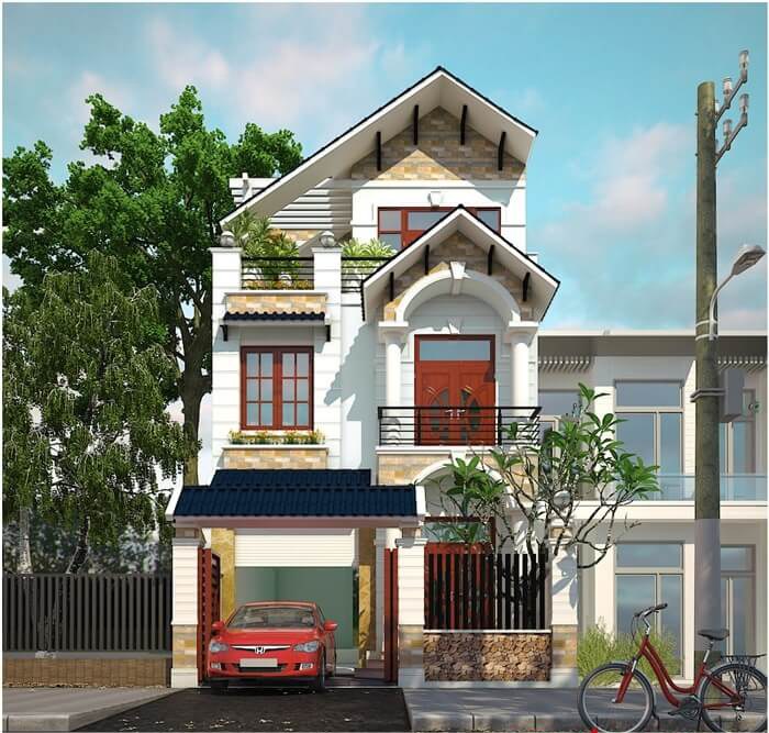Khác với những ngôi nhà nhỏ hẹp về mặt tiền, dù phần diện tích sân trước không quá lớn, những các mẫu nhà ống 3 tầng có sân trước vẫn đủ không gian cho bạn để phương tiện xe cộ. Đồng thời ngôi nhà ở phía trong sẽ không bị ảnh hưởng nhiều bởi khói bụi. Hơn cả là tránh được việc phải để xe thường xuyên trong nhà khiến cho không gian phòng khách toàn mùi xe cộ, bụi bẩn….